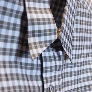 เสื้อเชิ้ต แขนสั้น ไหมแท้ ลายสก๊อต สีเทา ขาว รหัส DN-ST-04196612 Size M
