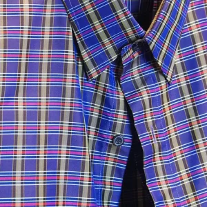 เสื้อเชิ้ต แขนสั้น ไหมแท้ ลายสก็อต สีม่วง เหลือง รหัส DN-ST-04196617 Size L