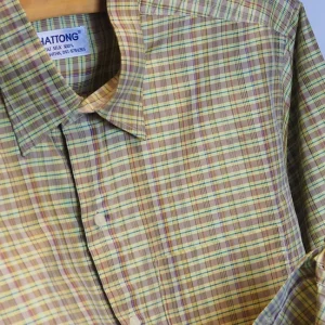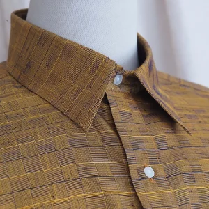 เสื้อเชิ้ต แขนสั้น ไหมแท้ ลายสก็อต สีเหลืองอมเขียว น้ำตาล รหัส DN-ST-04196620 Size XL