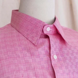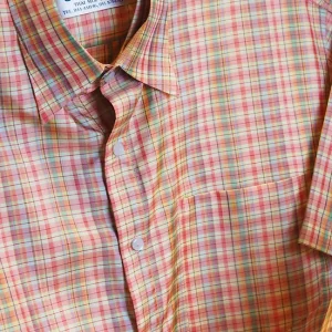 เสื้อเชิ้ต แขนสั้น ไหมแท้ ลายสก็อต สีโอลโรส เหลือง แดง รหัส DN-ST-04196624 Size M