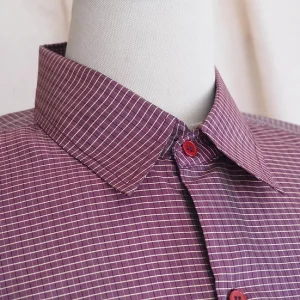 เสื้อเชิ้ต แขนสั้น ไหมแท้ ลายสก็อต สีแดง ฟ้า รหัส DN-ST-04196625