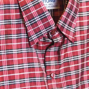 เสื้อเชิ้ต แขนสั้น ไหมแท้ ลายสก็อต สีแดง ดำ ขาว รหัส DN-ST-04196619
