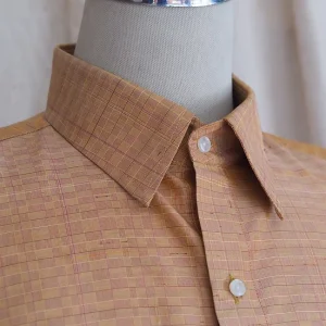 เสื้อเชิ้ต แขนสั้น ไหมแท้ ลายสก็อต สีเหลืองอมส้ม น้ำเงิน รหัส DN-ST-04196616 Size L