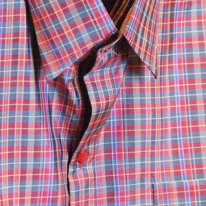 เสื้อเชิ้ต แขนสั้น ไหมแท้ ลายสก็อต สีแดง น้ำเงิน รหัส DN-ST-04196618 Size L