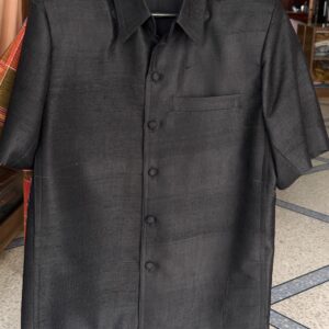 เสื้อซาฟารี คอปก ผ้าพื้น เนื้อไหมบ้าน มีขี้ไหม ไซส์ M รอบอก40 สีดำ รหัส DS-ST-05186701