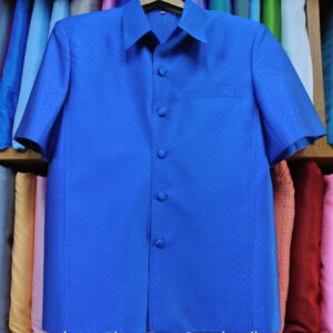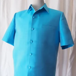 เสื้อซาฟารี คอปก ผ้าพื้น เนื้อเรียบ สีฟ้า รหัส DS-CT-102650 ไซร์ L