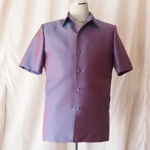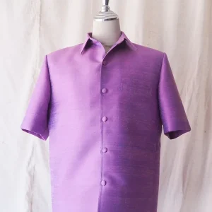 เสื้อซาฟารี คอปก ผ้าไหม พิมพ์ลาย เนื้อเรียบ ลายขอ ไซส์ L รอบอก 44 สีม่วง รหัส DS-NY-0109672