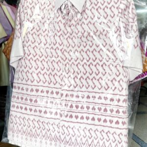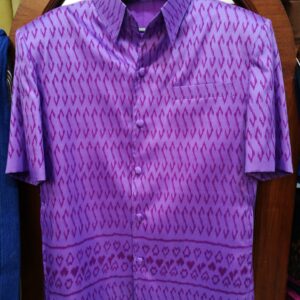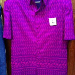 เสื้อซาฟารี คอปก ผ้าไหม พิมพ์ลาย เนื้อเรียบ ลายขอ ไซส์ L รอบอก44 สีม่วงชมพู รหัส DS-NY-0109671