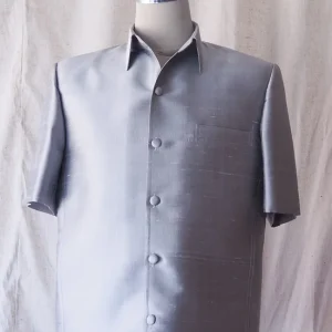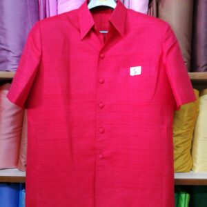 เสื้อซาฟารี คอปก ผ้าพื้น เนื้อไหมบ้าน size S รหัส DS-0117651