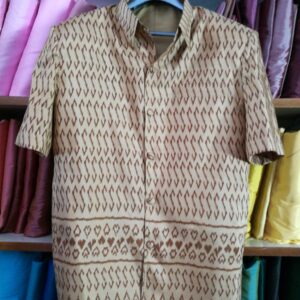 เสื้อซาฟารี คอปก ผ้าไหม พิมพ์ลาย เนื้อเรียบ ลายขอ ไซส์ XL รอบอก46 สีน้ำตาลเบจ รหัส DS-NY0920661