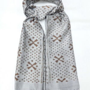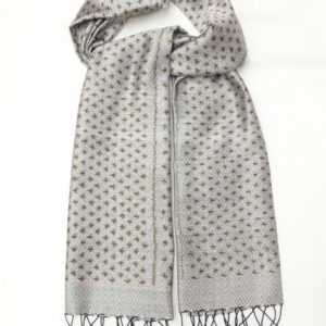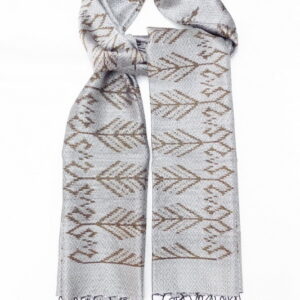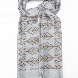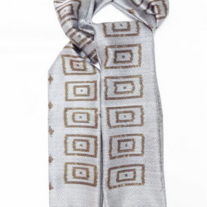 ผ้าคลุมไหล่ผ้าไหม มัดหมี่ ไหมแท้ มีชายครุย ขนาด 50×180ซม. สีเทาเงิน รหัส L4B-ST-188