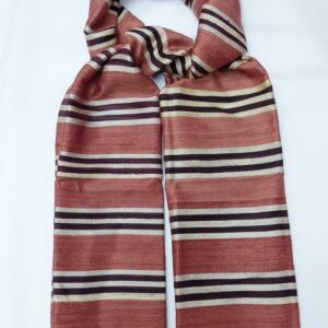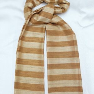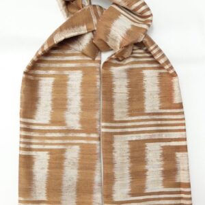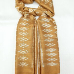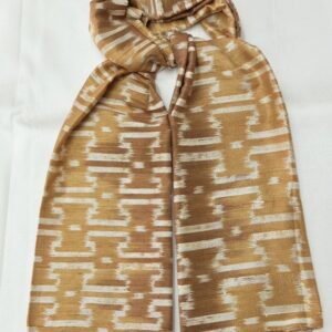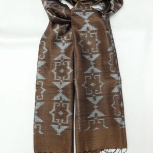 ผ้าคลุมไหล่ผ้าไหม ไหมแท้ ทอลายมัดหมี่ เนื้อเนียนนุ่ม 67×180 สีน้ำตาล รหัส ZM-ST-040