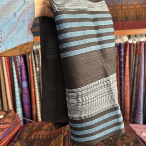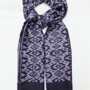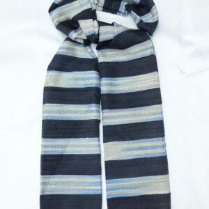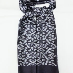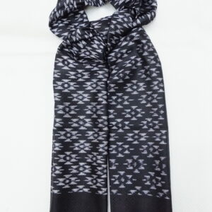 ผ้าคลุมไหล่ผ้าไหม ไหมแท้ ทอลายมัดหมี่ เนื้อเนียนนุ่ม 60×200 สีดำสลับฟ้าเทา รหัส ZM-AA-0424672