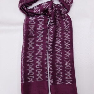 ผ้าคลุมไหล่ผ้าไหม ไหมแท้ ทอลายมัดหมี่ เนื้อเนียนนุ่ม 67×180 สีน้ำตาลดำ รหัส ZM-ST-074