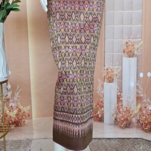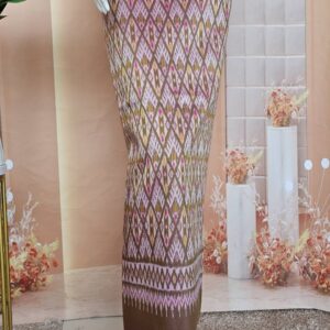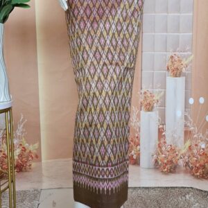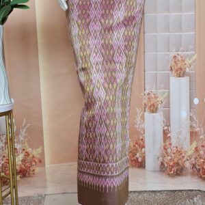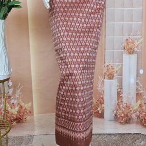 ซิ่น ผ้าไหมมัดหมี่ 2ตะกอ ขนาด 1×2หลา ลายพื้นเมือง สีน้ำตาลเบจ รหัส R1Q-SN-030667144