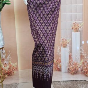 ซิ่น ผ้าไหมมัดหมี่ 2ตะกอ ขนาด 1×2หลา ลายพื้นเมือง สีม่วงเปลือกมังคุด รหัส R1Q-SN-03066714345