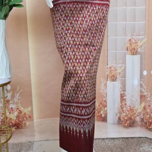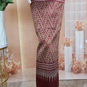 ซิ่น ผ้าไหมมัดหมี่ 2ตะกอ ขนาด 1×2หลา ลายพื้นเมือง สีแดง รหัส R1Q-SN-0306675