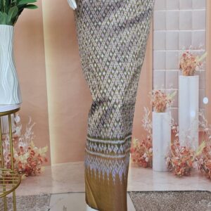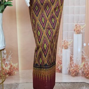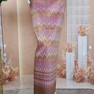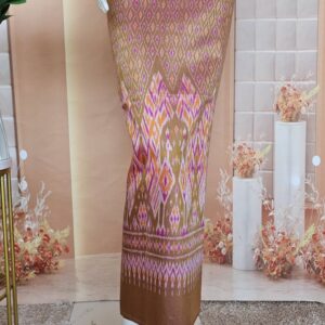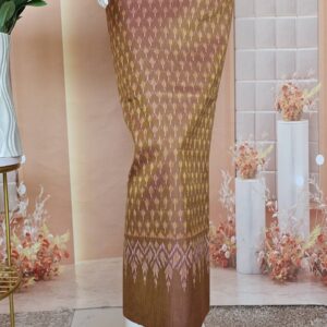 ซิ่น ผ้าไหมมัดหมี่ 2ตะกอ ขนาด 1×2หลา ลายพื้นเมือง สีน้ำตาลทอง รหัส R1Q-SN-03066716