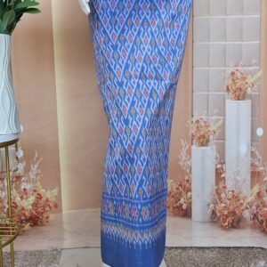 ซิ่น ผ้าไหมมัดหมี่ 2ตะกอ ขนาด 1×2หลา ลายพื้นเมือง สีฟ้า รหัส R1Q-SN-03066711