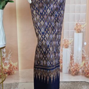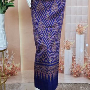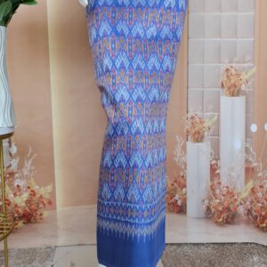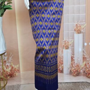 ซิ่น ผ้าไหมมัดหมี่ 2ตะกอ ขนาด 1×2หลา ลายพื้นเมือง สีน้ำเงิน รหัส R1Q-SN-03066714344