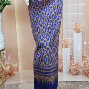 ซิ่น ผ้าไหมมัดหมี่ 2ตะกอ ขนาด 1×2หลา ลายพื้นเมือง สีน้ำเงิน รหัส R1Q-SN-03066714341