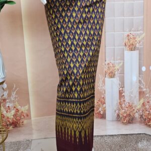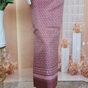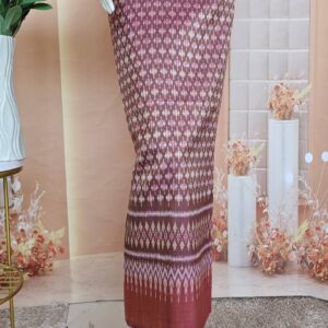 ซิ่น ผ้าไหมมัดหมี่ 2ตะกอ เครือสมอ ขนาด 1×2เมตร หน้านางชายครุย พื้นสีน้ำตาล รหัส R1G-NY0621661