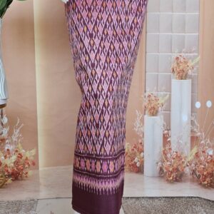 ซิ่น ผ้าไหมมัดหมี่ 2ตะกอ ขนาด กว้าง 95ซม. ยาว 2หลา ลายพื้นเมือง พื้นสีชมพู รหัส R1Q-07241142