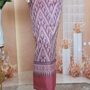 ซิ่น ผ้าไหมมัดหมี่ 2ตะกอ ขนาด 1×2หลา ลายพื้นเมือง สีแดงอมชมพู รหัส R1Q-SN-03066723