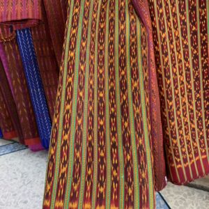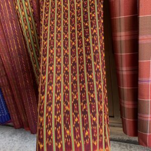 ซิ่น ผ้าไหมมัดหมี่ 3 ตะกอ ไหมบ้าน ลายโฮล ปะนะ ขนาด 1×2เมตร พื้นสีแดง รหัส R1A-ST0212657