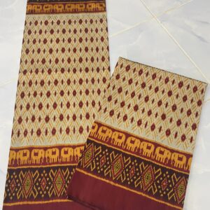 ซิ่น ผ้าไหมมัดหมี่ 3ตะกอ ขนาด 1×2เมตร พื้นสีน้ำตาล รหัส R2Q-KN-07156720072