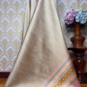 ซิ่น ผ้าไหมมัดหมี่ 3ตะกอ ขนาด 1×2เมตร พื้นสีขาวครีม รหัส R2Q-KN-07156720102