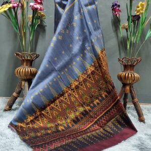 ซิ่น ผ้าไหมมัดหมี่ 3ตะกอ ขนาด 1×2เมตร พื้นสีฟ้าเทา รหัส R2Q-CH-07106718195