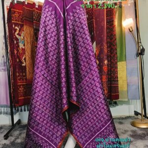 ซิ่น ผ้าไหมมัดหมี่ 3ตะกอ ขนาด 1×2เมตร พื้นสีม่วง รหัส R2Q-CH-07106718192