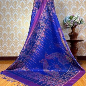 ซิ่น ผ้าไหมมัดหมี่ ทอยกดอก 6ตะกอ ขนาด 1×2เมตร ลายร้อยดาว พื้นสีม่วง รหัส L9A-30-0706670706671810