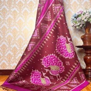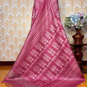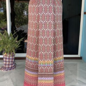 ซิ่น ผ้าไหมมัดหมี่ ทอยกดอก 6ตะกอ ขนาด 1×2เมตร มีหน้านางชายครุย พื้นสีชมพู รหัส M2A-KN-05306712262