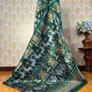 ซิ่น ผ้าไหมมัดหมี่ ทอยกดอก 6ตะกอ ขนาด 1×2เมตร ลายขอพระราชทาน พื้นสีเขียว รหัส PCS-L9A-KN-0701672130