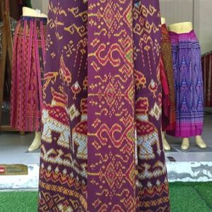 ซิ่น ผ้าไหมมัดหมี่ ทอยกดอก 6ตะกอ ขนาด 1×2เมตร ลายม้า พื้นสีแดง รหัส M2A-SK-0716671400