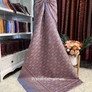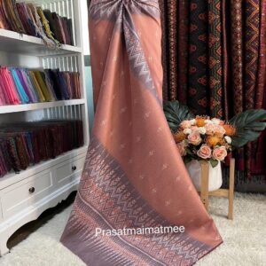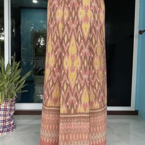 ซิ่น ผ้าไหมมัดหมี่ ทอยกดอก 6ตะกอ สีธรรมชาติ ขนาด 1×4.30เมตร พื้นสีน้ำตาล รหัส 4L1-NY-6NA8