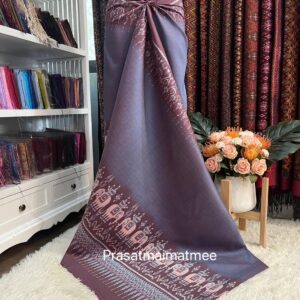ซิ่น ผ้าไหมมัดหมี่ ทอยกดอก 6ตะกอ สีธรรมชาติ ขนาด 1×4เมตร พื้นสีม่วง รหัส 4L1-ND-06066715192