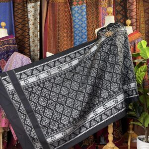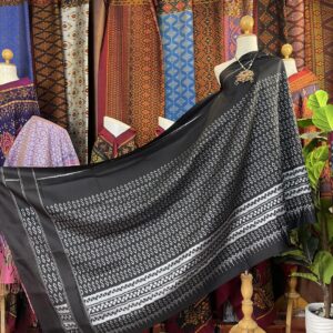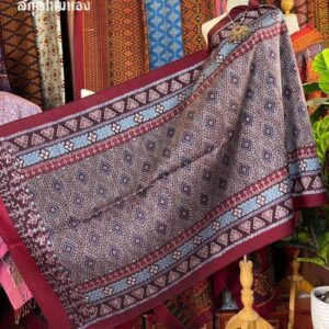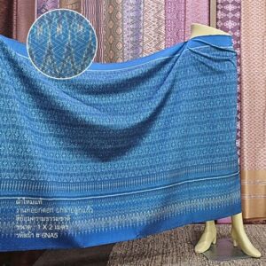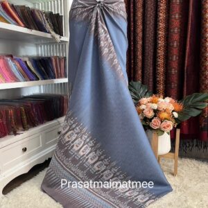 ซิ่น ผ้าไหมมัดหมี่ ทอยกดอก 6ตะกอ สีธรรมชาติ ขนาด 1×4เมตร พื้นสีฟ้าเทา รหัส 4L1-ND-0606671519