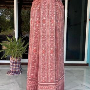 ซิ่น ผ้าไหมมัดหมี่ ทอยกดอก ขนาด 1×2.10เมตร ลายมังกร มีหน้านางชายครุย พื้นสีแดง รหัส M2A-NY-6SP001