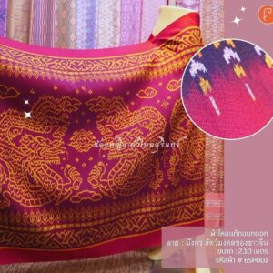 ซิ่น ผ้าไหมมัดหมี่ ทอยกดอก 6ตะกอ สีธรรมชาติ ขนาด 1×4เมตร พื้นสีชมพูม่วง รหัส 4L1-ND-0606671518