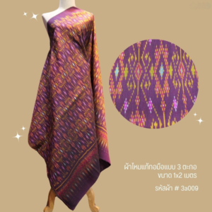 ซิ่น ผ้าไหมมัดหมี่ 3ตะกอ ขนาด 1×2เมตร สีม่วง รหัส R2Q-NY-3a009