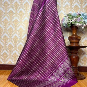 ซิ่น ผ้าไหมมัดหมี่ 3ตะกอ ขนาด 1×2เมตร ลายร้อยดาว พื้นสีม่วง รหัส R2Q-KN-0507672141