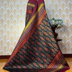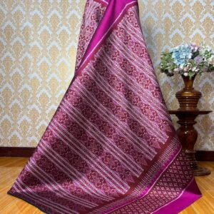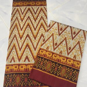 ซิ่น ผ้าไหมมัดหมี่ 3ตะกอ ขนาด 1×2เมตร ลายน้ำไหล พื้นสีน้ำตาลแดง รหัส R2Q-CH-07186720242