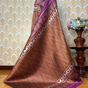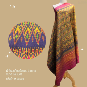 ซิ่น ผ้าไหมมัดหมี่ 3ตะกอ ขนาด 1×2เมตร สีม่วงประกายทอง รหัส R2Q-NY-3a008
