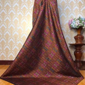 ซิ่น ผ้าไหมมัดหมี่ 3ตะกอ ขนาด 1×2เมตร ลายปันเช็ค พื้นสีน้ำตาล รหัส R2Q-KN-0511671924
