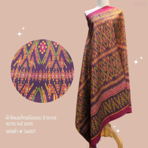 ซิ่น ผ้าไหมมัดหมี่ 3ตะกอ ขนาด 1×2เมตร สีม่วง รหัส R2Q-NY-3a007