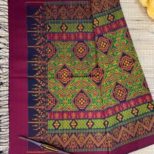 ซิ่น ผ้าไหมมัดหมี่ ไหมแท้ 6ตะกอ มีหน้านาง ชายครุย ขนาด 1×2เมตร สีเขียว รหัส L9A-AA-M031