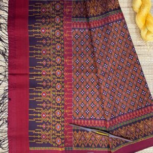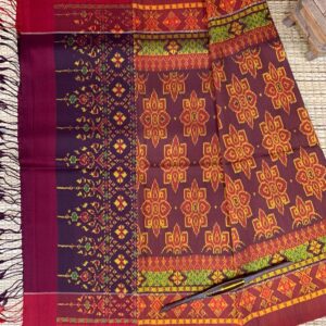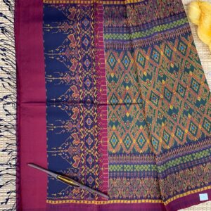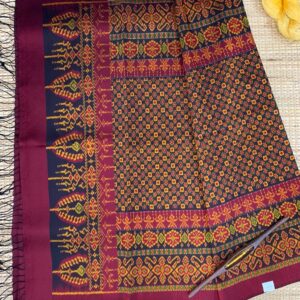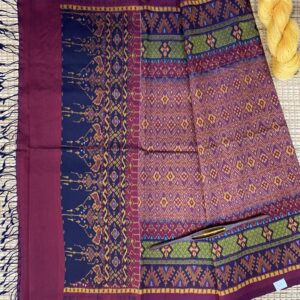 ซิ่น ผ้าไหมมัดหมี่ ไหมแท้ 6ตะกอ มีหน้านาง ชายครุย ขนาด 1×2เมตร สีน้ำตาลแดง รหัส L9A-AA-M039